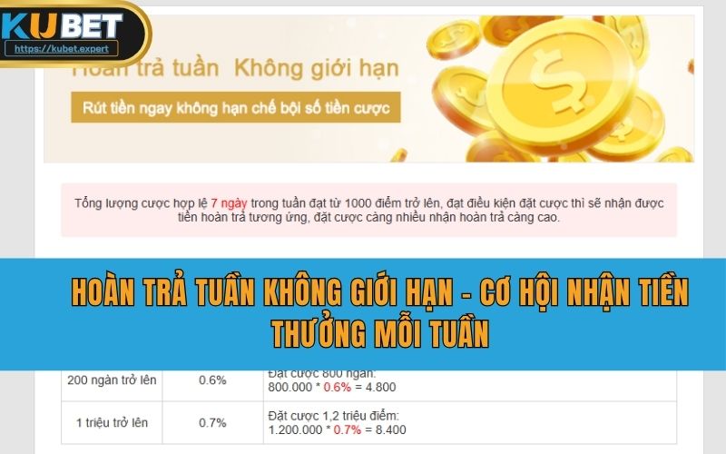 Kubet thường xuyên mang đến loạt sự kiện khuyến mãi đa dạng, đáp ứng mọi nhu cầu của các sảnh game và từng nhóm hội viên. Nhờ đó, người chơi có thể dễ dàng chọn lựa những chương trình ưu đãi phù hợp với tài khoản của mình.